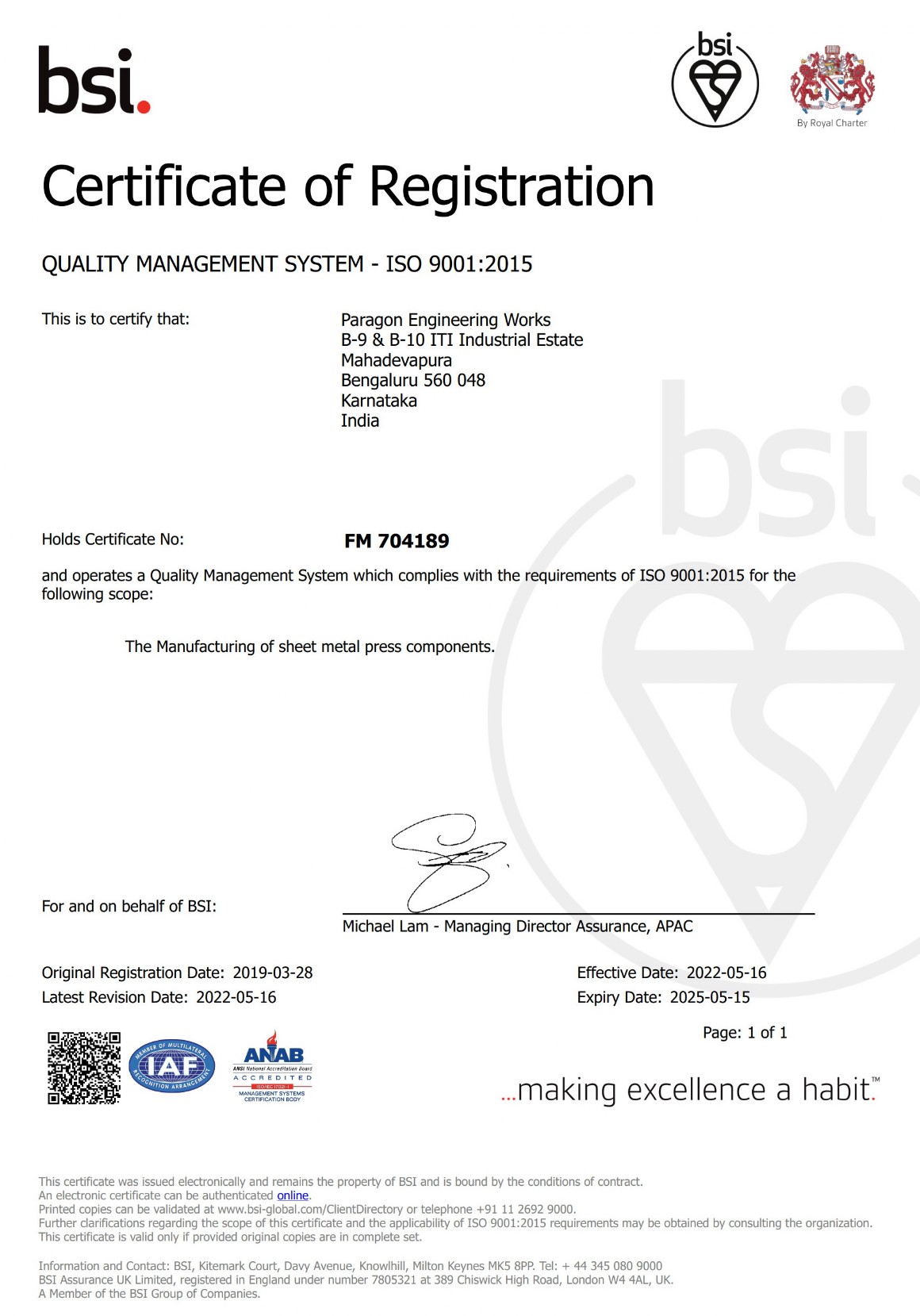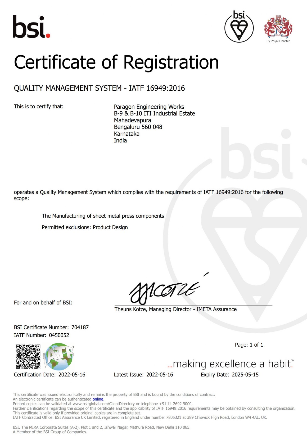 "We are committed to supply products and services to our customers to meet their product requirements through continual improvement of our processes and control systems. We shall contribute and achieve sustainable Organizational Excellence through our vision and team efforts"